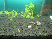 Ich benutze als Bodengrund Ada Aqua Soil „Amazonia“, welches das Wasser weicher macht und den Ph-wert auf ca. 6,5 senkt, also genau die richtigen Wasserwerte für Pflanzen wie Heminathus Callitrichoides ‚cuba‘, Tonina fluviatillis etc.