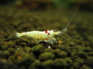 Hier einmal die neue Amanogarnele, die ein Weibchen zu sein scheint, was an den winzigen Eiern erkennbar ist (ich persönlich mag dieses Foto irgendwie sehr;):