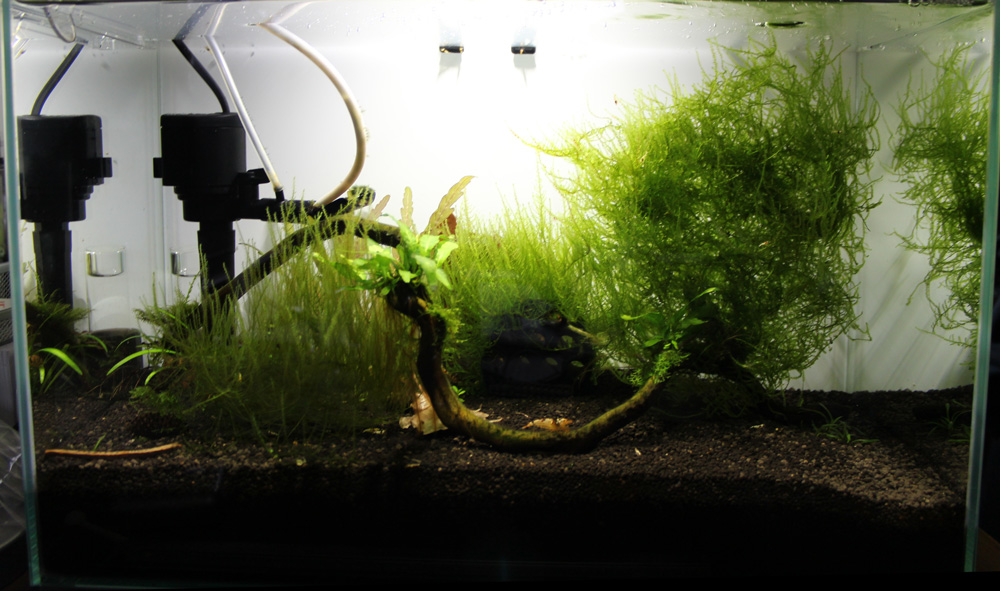 in meinem reinem Garnelenaquarium gibt es nicht viel neues. Die etwas älteren Junggarnelen sind alle ab einer Größe von einem Zentimeter in die anderen Aquarien aufgeteilt worden. So sitzen jetzt nur noch ein paar sehr kleine Jungtiere, drei oder vier große Weibchen und die Shrimps, die aussehen wie Taiwaner (ich vermeide es irgendwie diese Garnelen „Taiwaner“ zu nennen, da sie ja eigentlich auch Mischlinge sind).