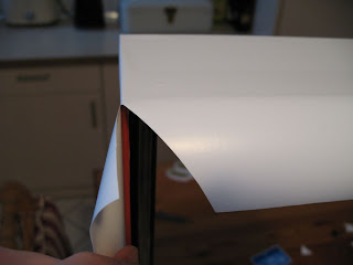 Wichtig ist auch, dass man nicht gleich die komplette Schutzfolie der Klebefolie abzieht, sondern wirklich immer nur erst für das Stück, was man gerade verklebt bzw. aufbringt.