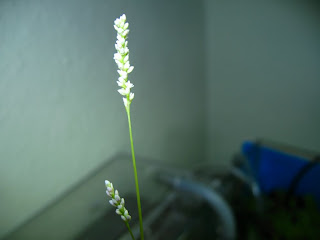 ich musste eben feststellen, dass die Polygonum, die aus dem 25 Liter Garnelenbecken wächst, momentan Blüten hat! Und das obwohl ich, in der Nacht mit offenem Fenster schlafe und es schon recht kühl im Zimmer wird.