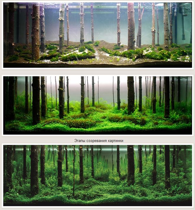 Auf einem russischen Aquascapingblog habe ich nun verschiedene Entwicklungsstufen dieses Layouts entdeckt: Klick!