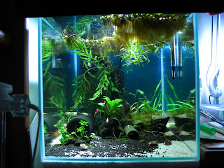 So weiter gehts- und zwar mit dem 18er Becken, in das ich anfang letzter Woche Ludwigia brevipes in den Hintergrund gepflanzt habe. Noch ist sie etwas mickrig, aber ich kann mir schon schöne Büsche im Hintergrund mit dieser Stängelpflanze vorstellen;)