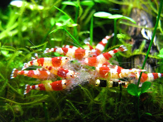Auch ganz gut läuft es in meinem großen 112L Becken, auch wenn die rot-weißen und schwarzweißen Bienengarnelen momentan eine kleine Vermehrungspause eingelegt haben. Trotzdem konnte ich auch hier ein Haufenfoto machen: