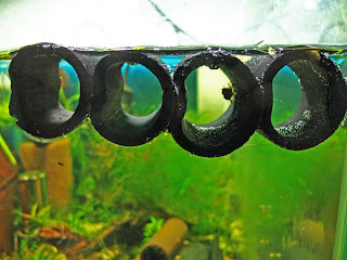 ich habe ja schon seit einiger Zeit in dem 25er Taiwan-Mischlingsbecken zu Kohle verarbeitete Bambusröhren als Garnelenbehausung im Einsatz.