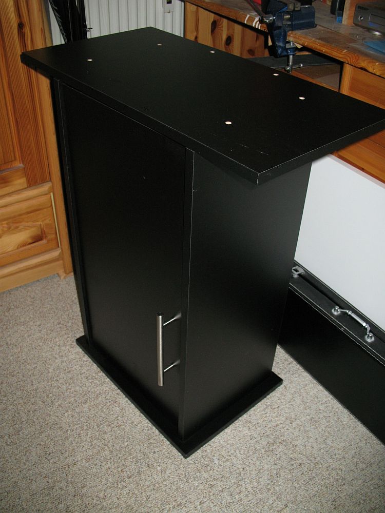 Es ist natürlich beim genaueren Hinsehen nicht perfekt aber ich finde ihn durchaus gelungen. Diesmal habe ich, dem Holz des Schrankes zu liebe, auf die Seifen-Wasser Mischung verzichtet und die Blasen direkt mit der Plastikkarte herausgestrichen. So gut wie keine Blasen, selbst auf den großen Flächen der Seitenwände und der Tür! Lediglich die Kanten so scharf und genau zu bekleben ist recht knifflig aber nach und nach klappt dies auch immer besser!