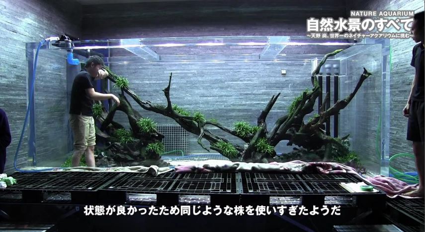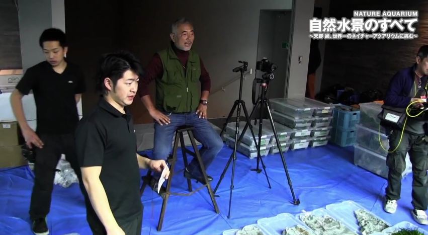 Als das Hardscape stand, wurde das Aquarium dann auch gleich bepflanzt. Dabei trohnte ruhte Herr Amano auf einem Hocker und gab Anweisungen (so will ich später auch mal arbeiten:P).