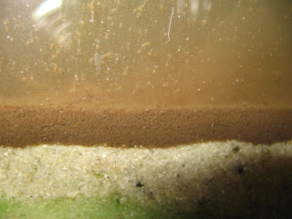 Und danach vorsichtig der Sand für den Vordergrund eingefüllt und die Barriere entfernt: